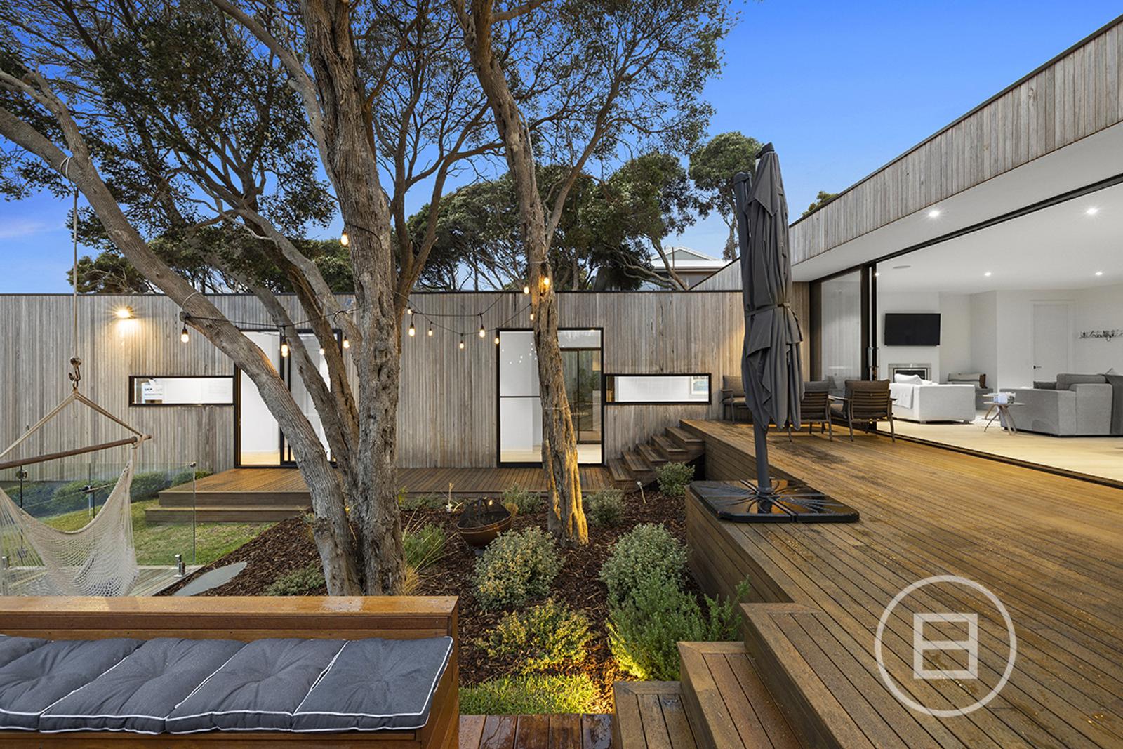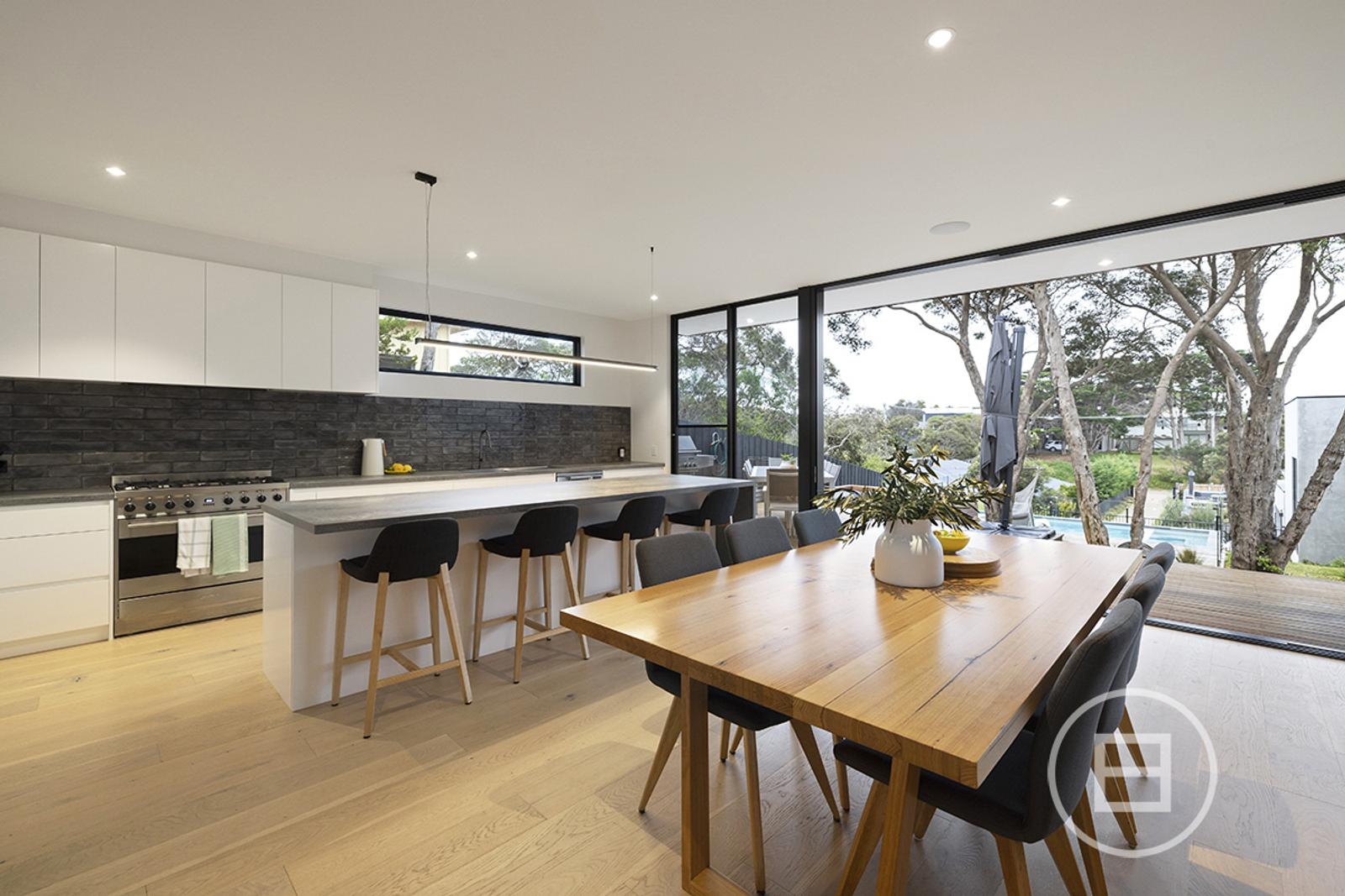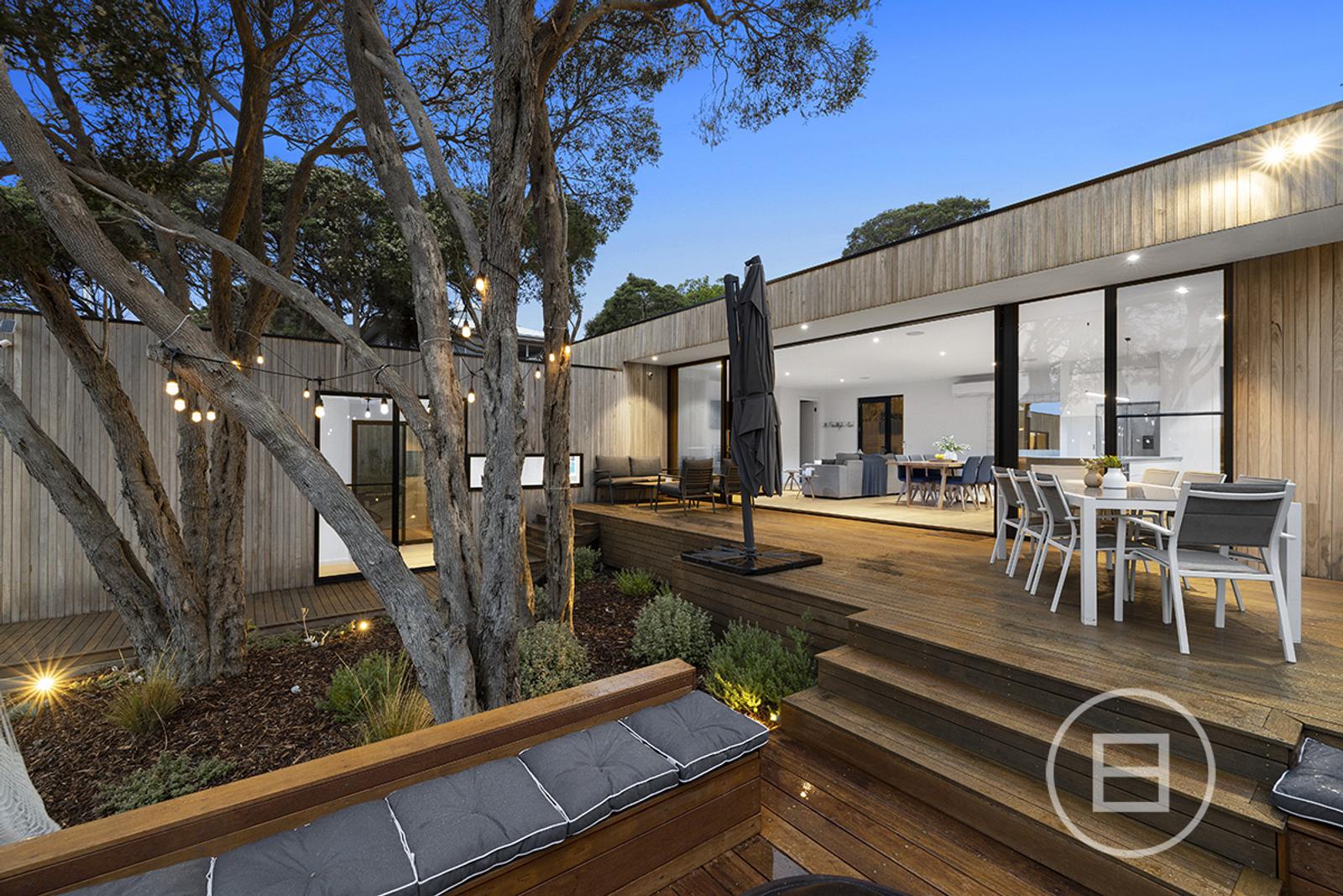 Set on 1,042 sqm approx. of land, the property encompasses 4 bedrooms plus study and/or rumpus over an L-Shaped floorplan, with the large kitchen/living/dining being the showpiece set up amongst the treetops, and overlooking the deck and pool. Just a short walk from the Blairgowrie beaches and village, it is located in the heart of Blairgowrie.