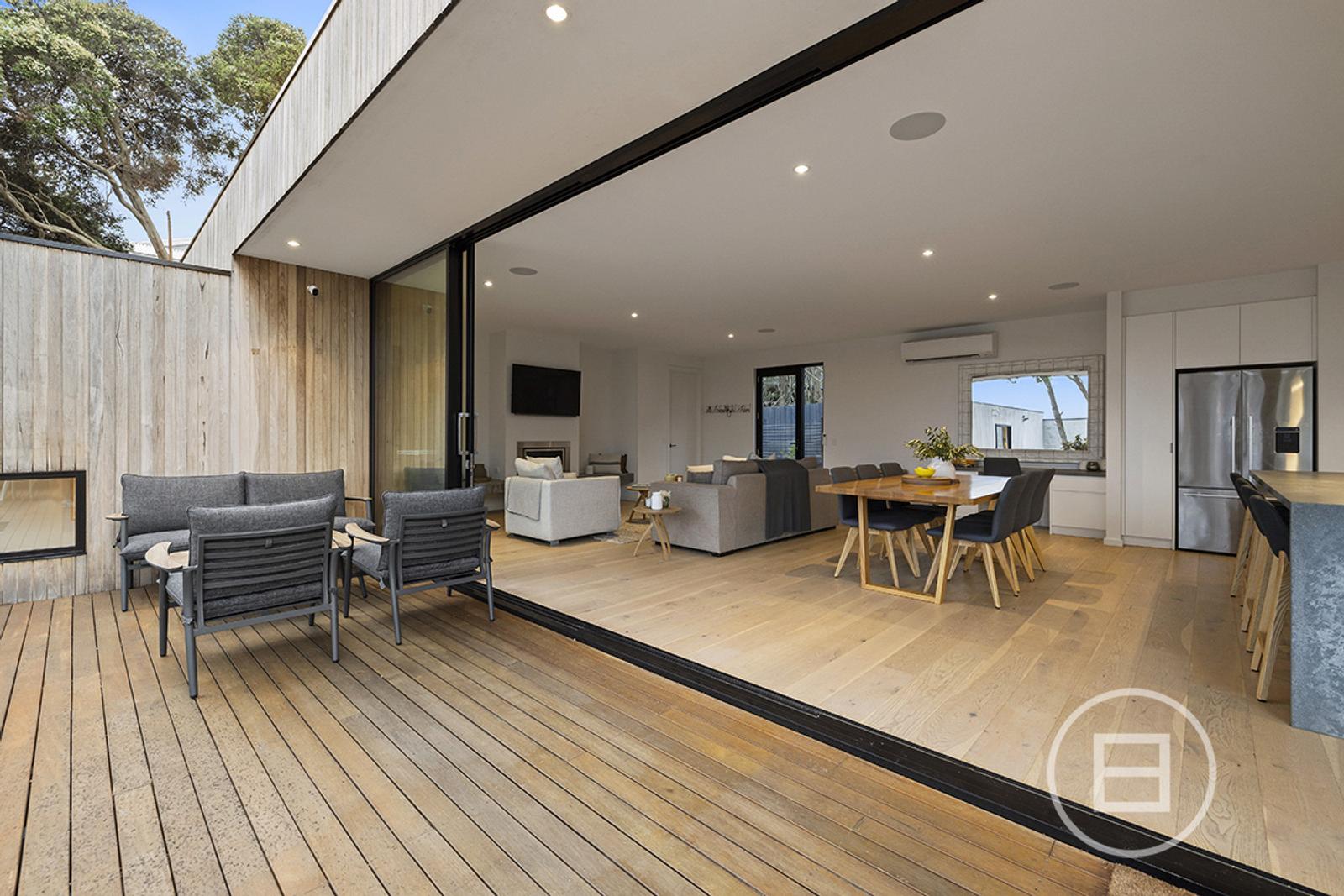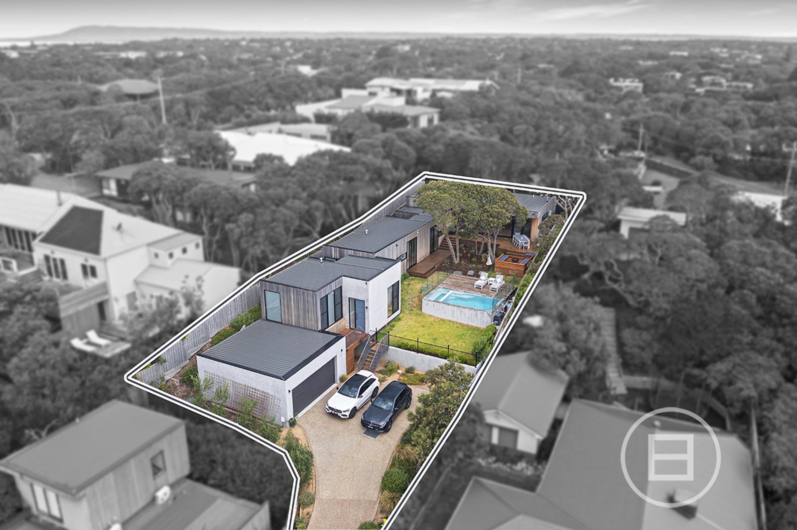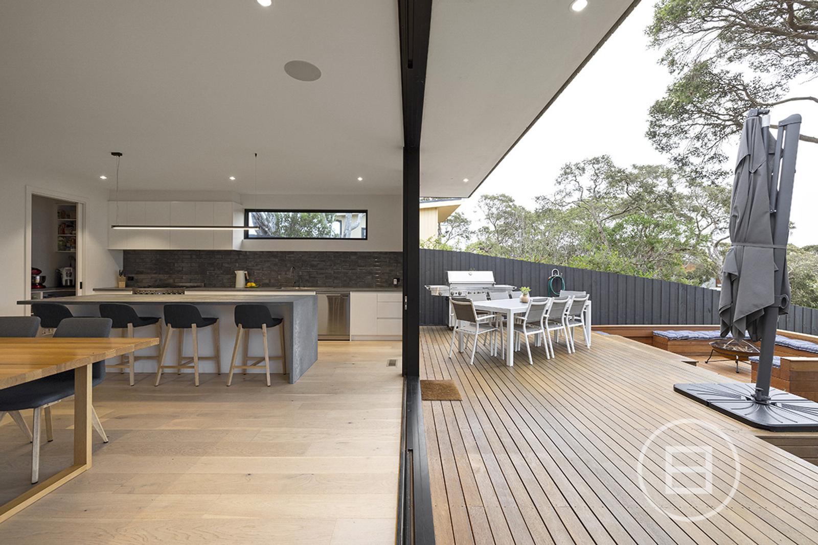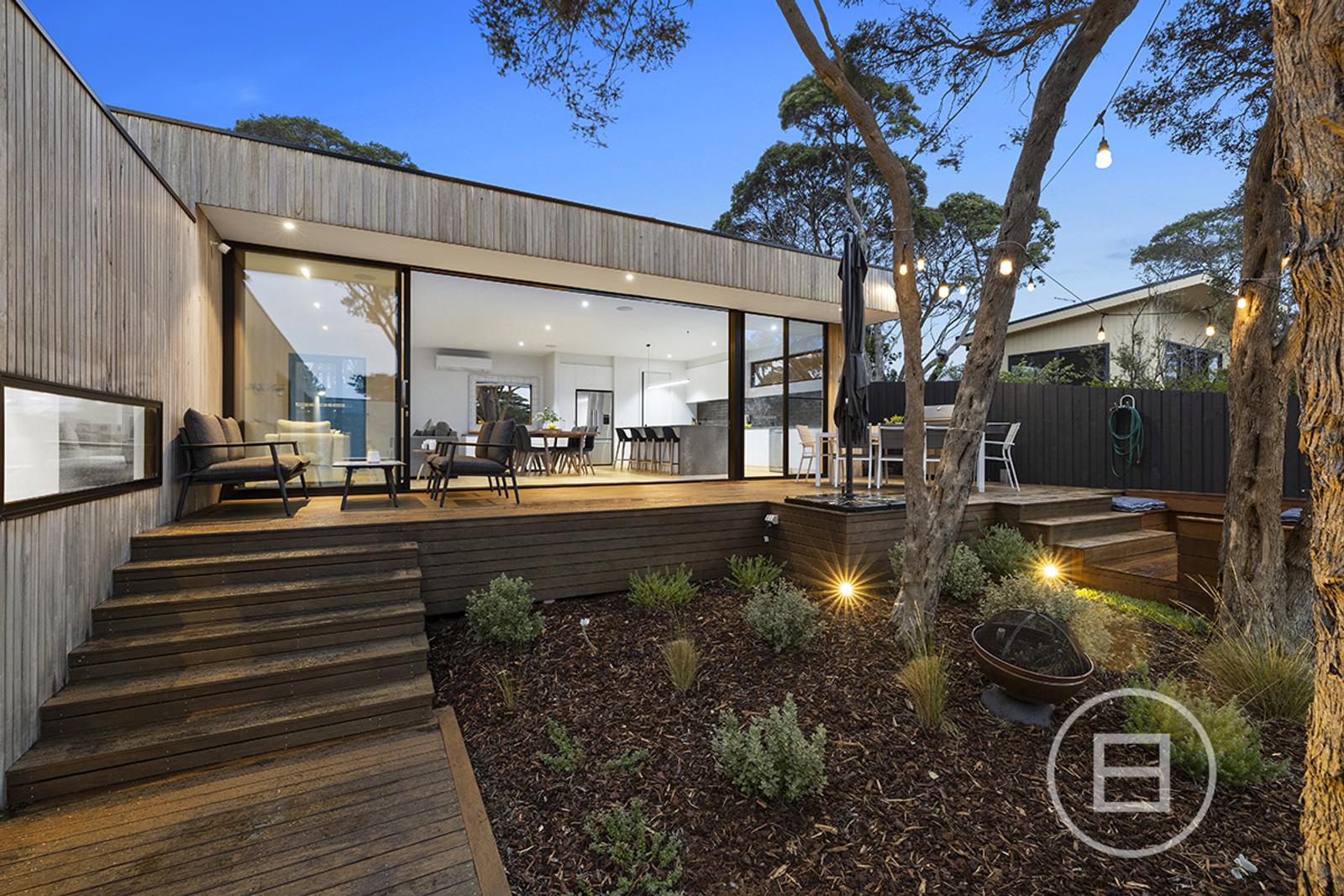 Set on 1,042 sqm approx. of land, the property encompasses 4 bedrooms plus study and/or rumpus over an L-Shaped floorplan, with the large kitchen/living/dining being the showpiece set up amongst the treetops, and overlooking the deck and pool. Just a short walk from the Blairgowrie beaches and village, it is located in the heart of Blairgowrie.