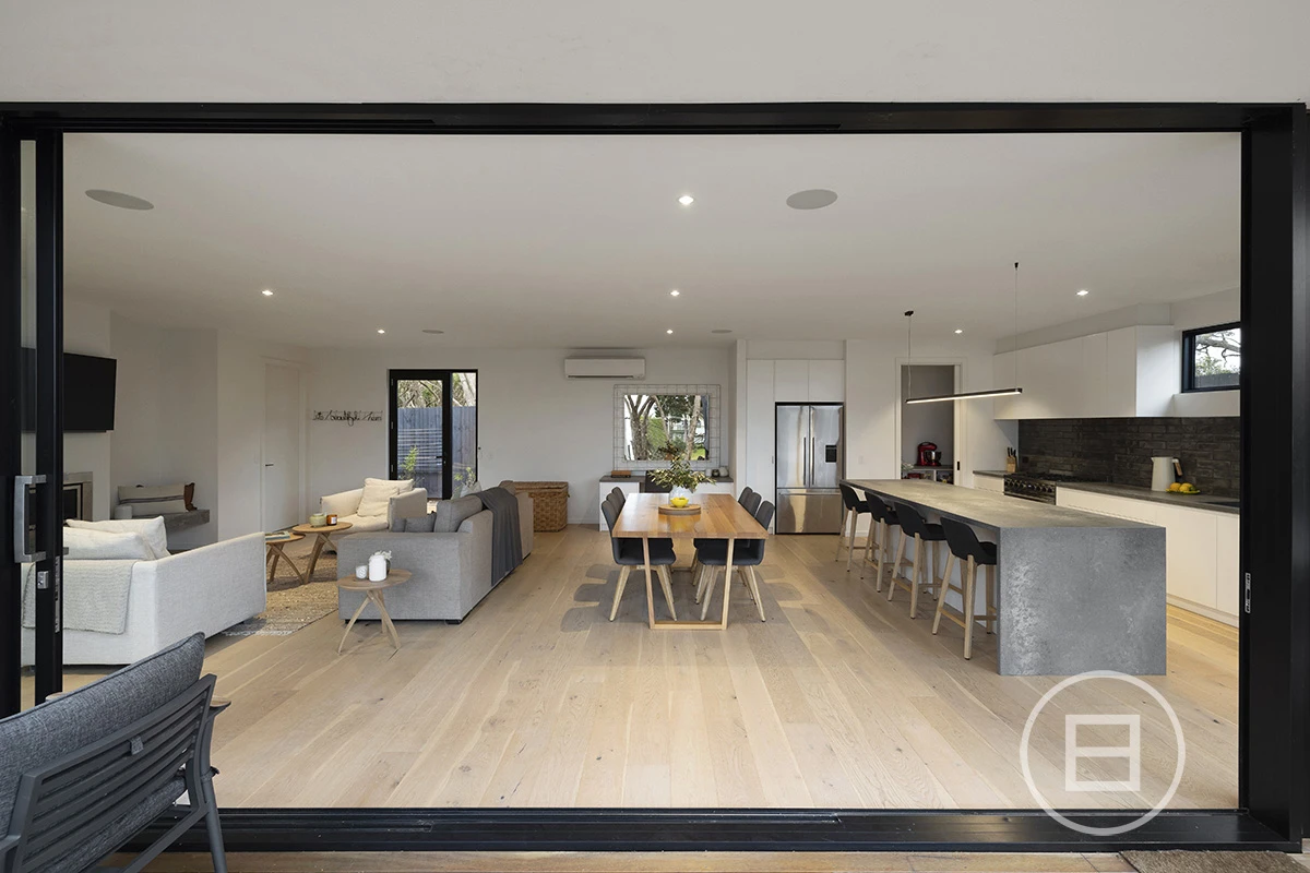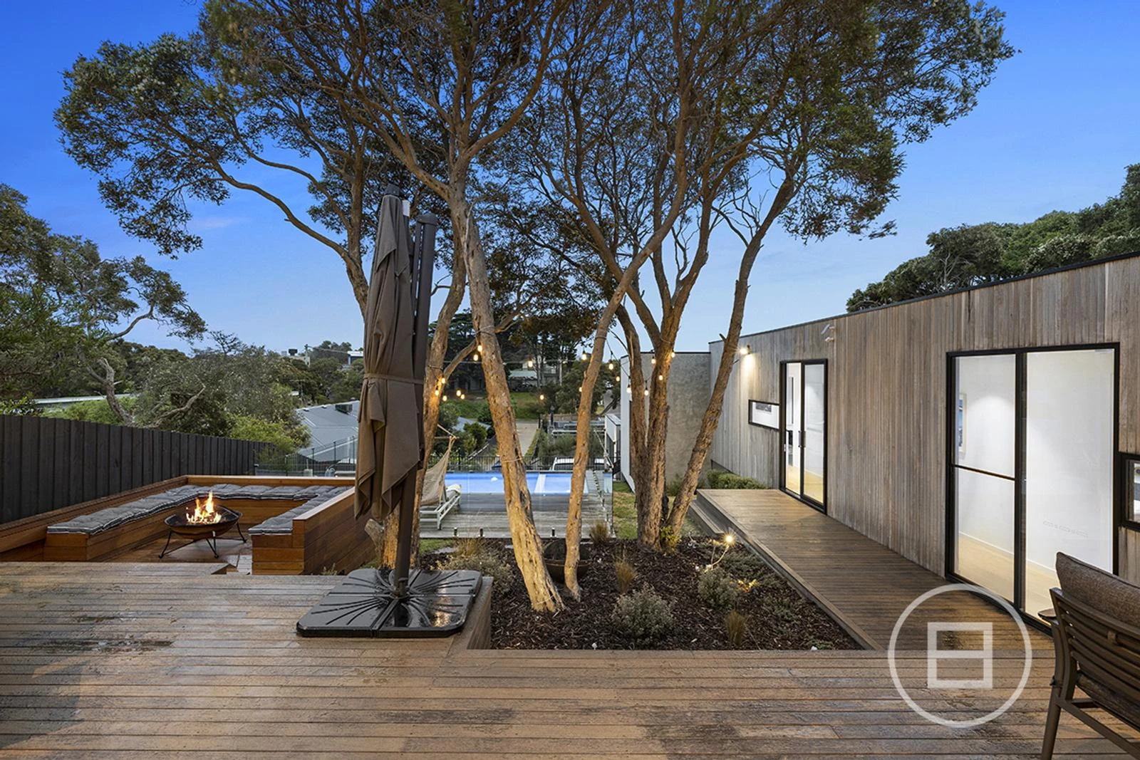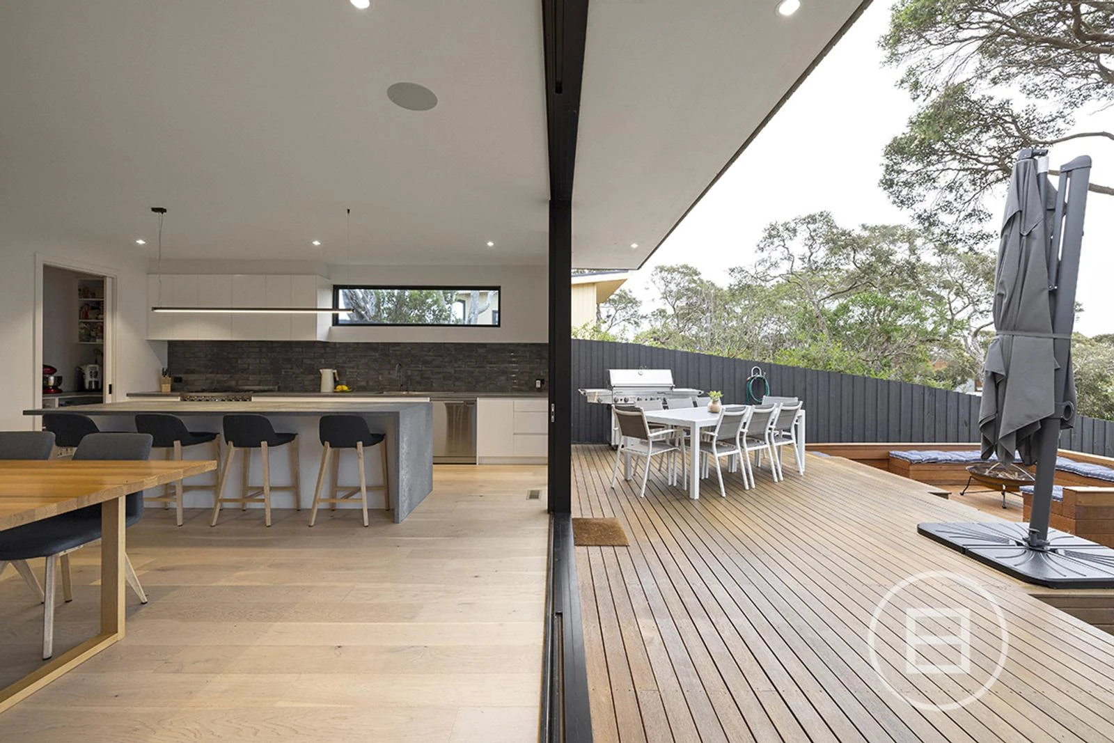 Seamless indoor/outdoor living for all occasions. The elevated outdoor entertaining area, opening up onto the entertaining deck and firepit, all overlooking the pool and spa.