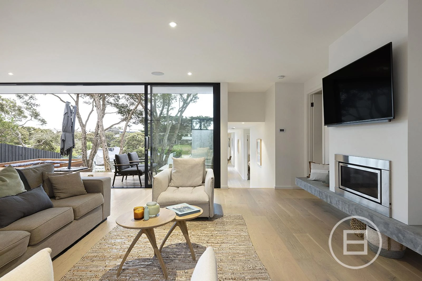 The property is silver top ash clad with merbau decks, custom timber engineered flooring throughout, matte black aluminium windows, gas log fireplace in the living room, ducted heating, an Arlo camera system, and a magical outdoor lighting plan. A double car garage, electric front gates, and an epic sunset viewing spot on the deck; this is a true escape.