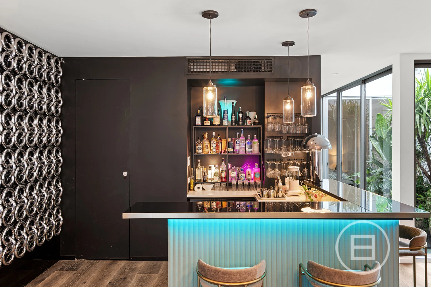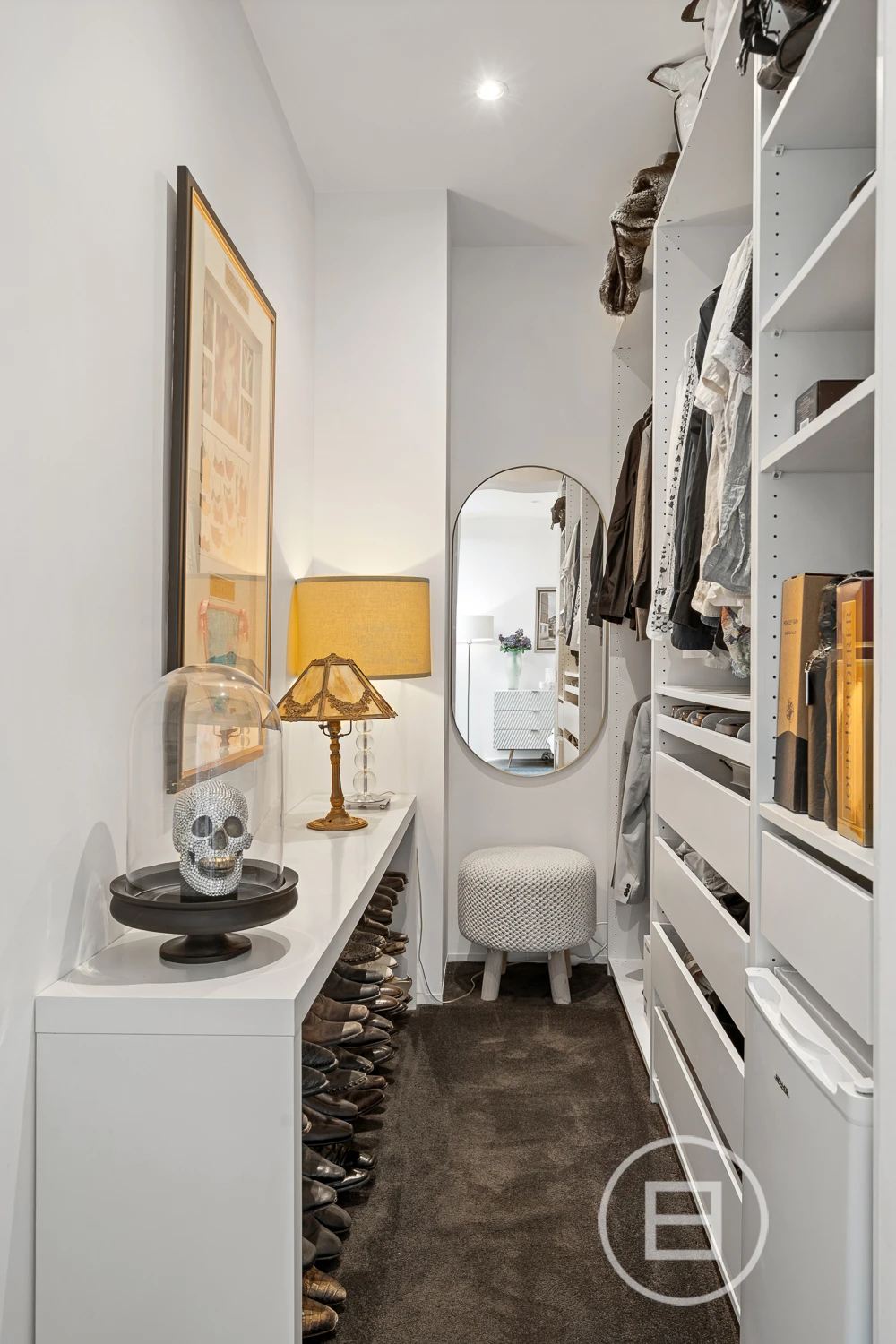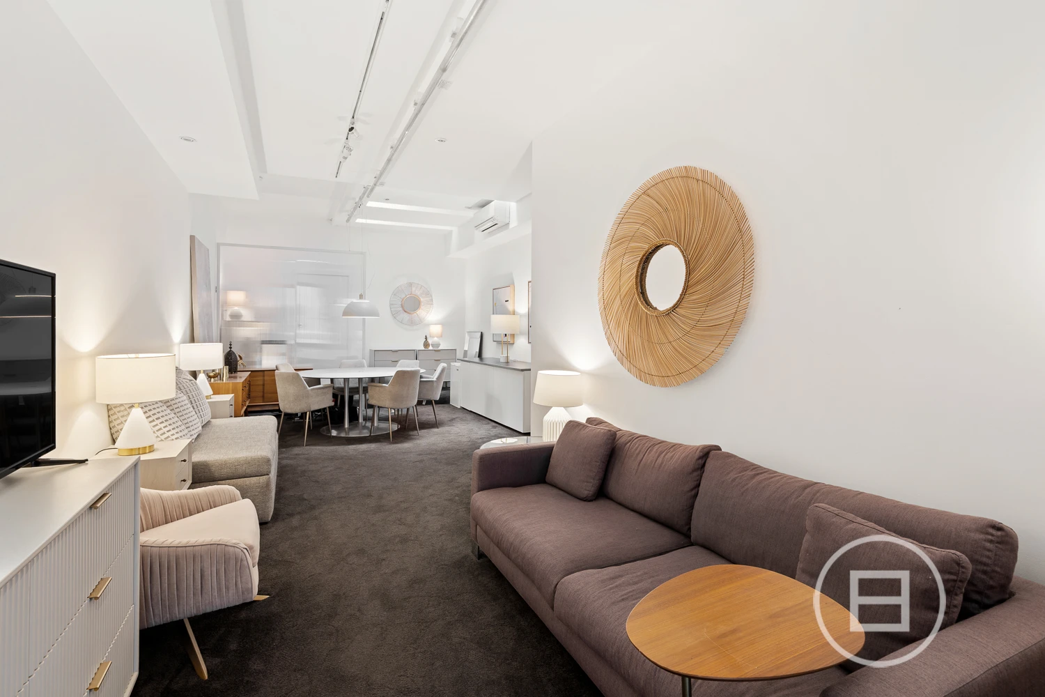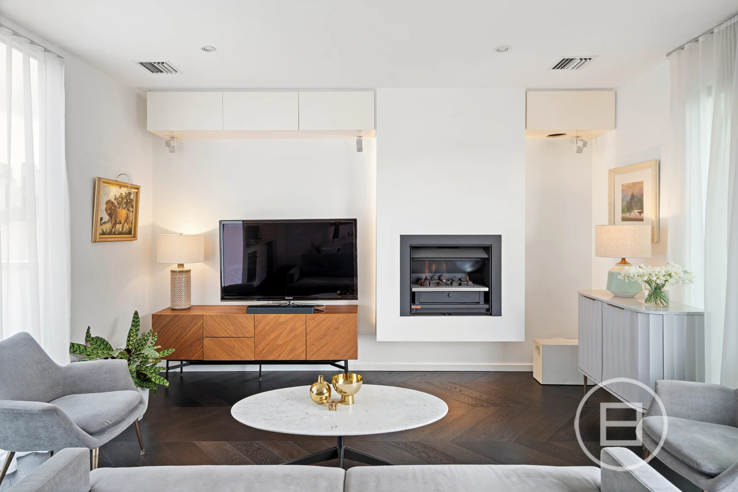 A flexible floor plan rises from a ground-level tandem garage and expansive retail/office/bedroom area with easy scope to rework for any pursuit. Above, a separately lettable office is currently home to a bar and entertainment space brilliant for marquee events, joined on the sunlit second storey by a kitchenette, powder room, garden atrium, and entirely separate guest bedroom with an ensuite and walk-in robe. Effectively its own apartment, a clever third level’s living/dining area, Smeg/Miele kitchen, and mains-gas barbecue terrace combine to be a joy for nights by the fire, morning coffees, and evening cocktails, while extensive storage and a chic ensuite accompany a sumptuous master.